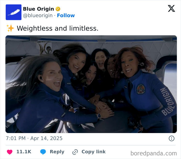 Upon successful completion, the women were thrilled, but their emotions, both before and after the mission, as well as the quest itself were met with different reactions from the general public. Many people took to the internet to share what they thought about Blue Origin’s mission, and they didn’t hold back their opinions much. Scroll down to find some of their thoughts on the list below.