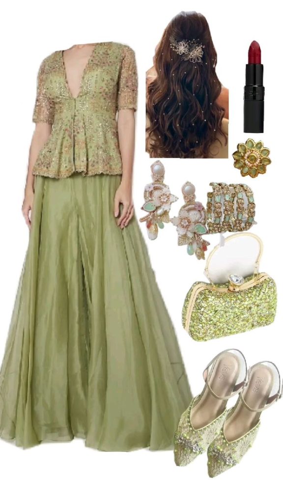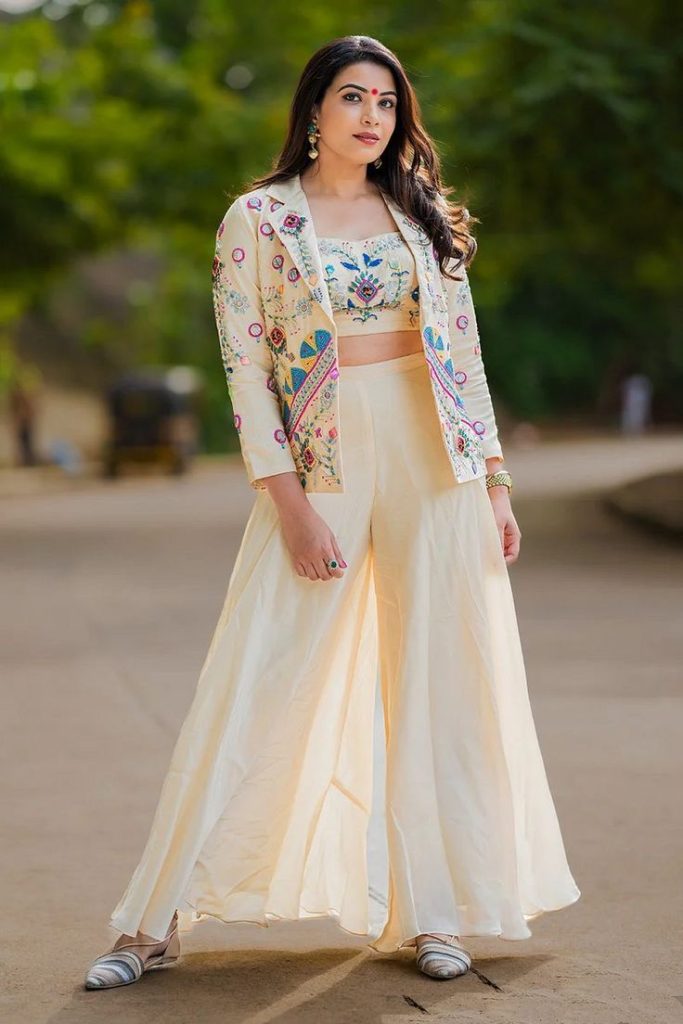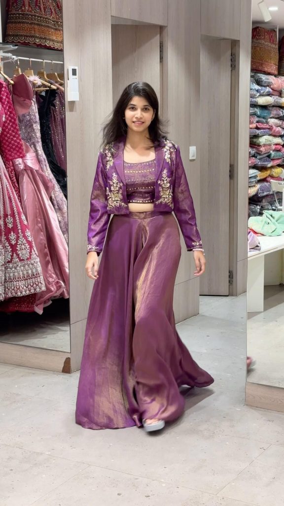 Fusion wear is the answer if you want comfort + style. Think crop tops with palazzos, jackets over sarees, or dhoti pants with short kurtas. Great for young professionals and college students during festivals.